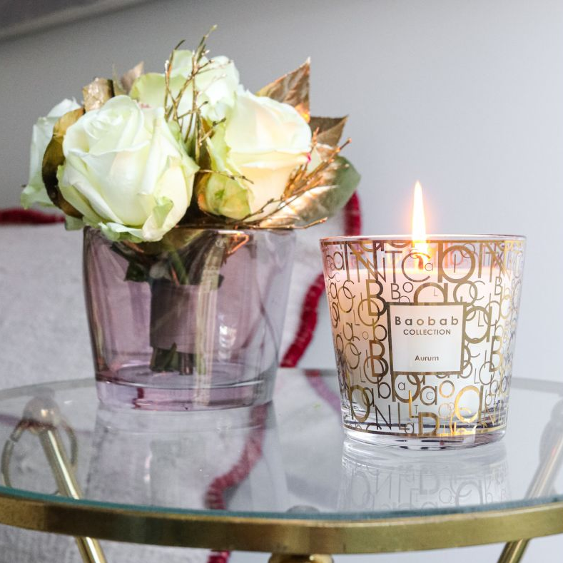 The Aurum scented candle is housed in a golden glass with a 70s inspired logo enveloping all over. Notes of Jasmine and Divine Musk fill the air with opulence.