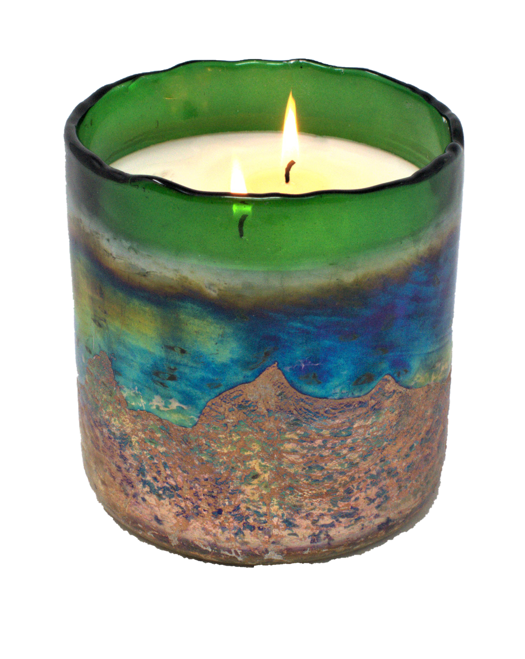 Himlayan Candles will give your home a soothing and relaxing ambiance with our Horizon Candle Collection. These candles are truly unique artistic pieces that evoke beautiful images of horizon landscapes. The glass containers have a textured gold or silver finish at the base and a shiny, smooth finish at the top and make an elegant focal point to any space. The candles come in Himalayan Signature Fragrances according to color.