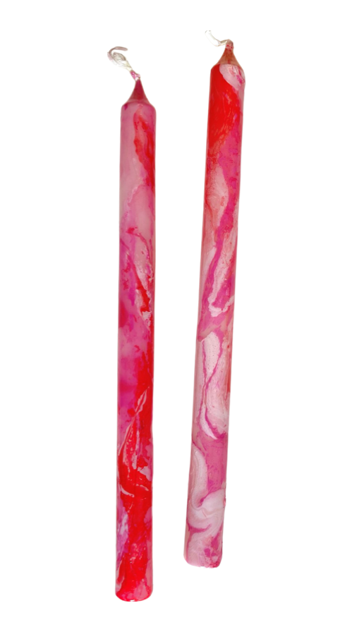 - High End Pink, Red and White Italian Wax Marble Set of 2 Taper Candles