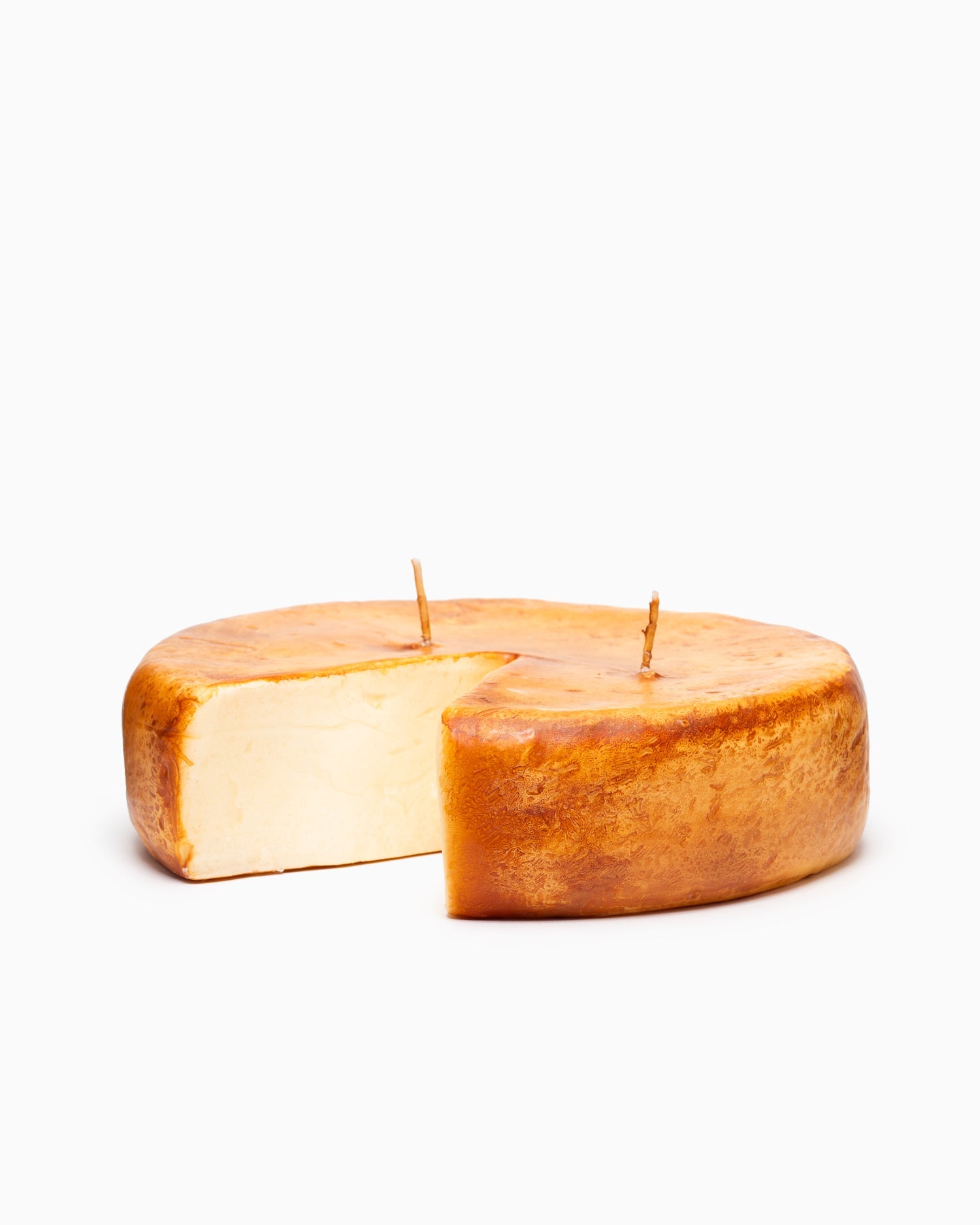 Featuring two candle wicks, this large-sized candle ensures a steady and even burn, releasing a warm and inviting glow that creates a cozy atmosphere. As the flames dance atop the wicks, they beautifully illuminate the cheese wheel's unique design, highlighting the artistry and craftsmanship behind its creation.