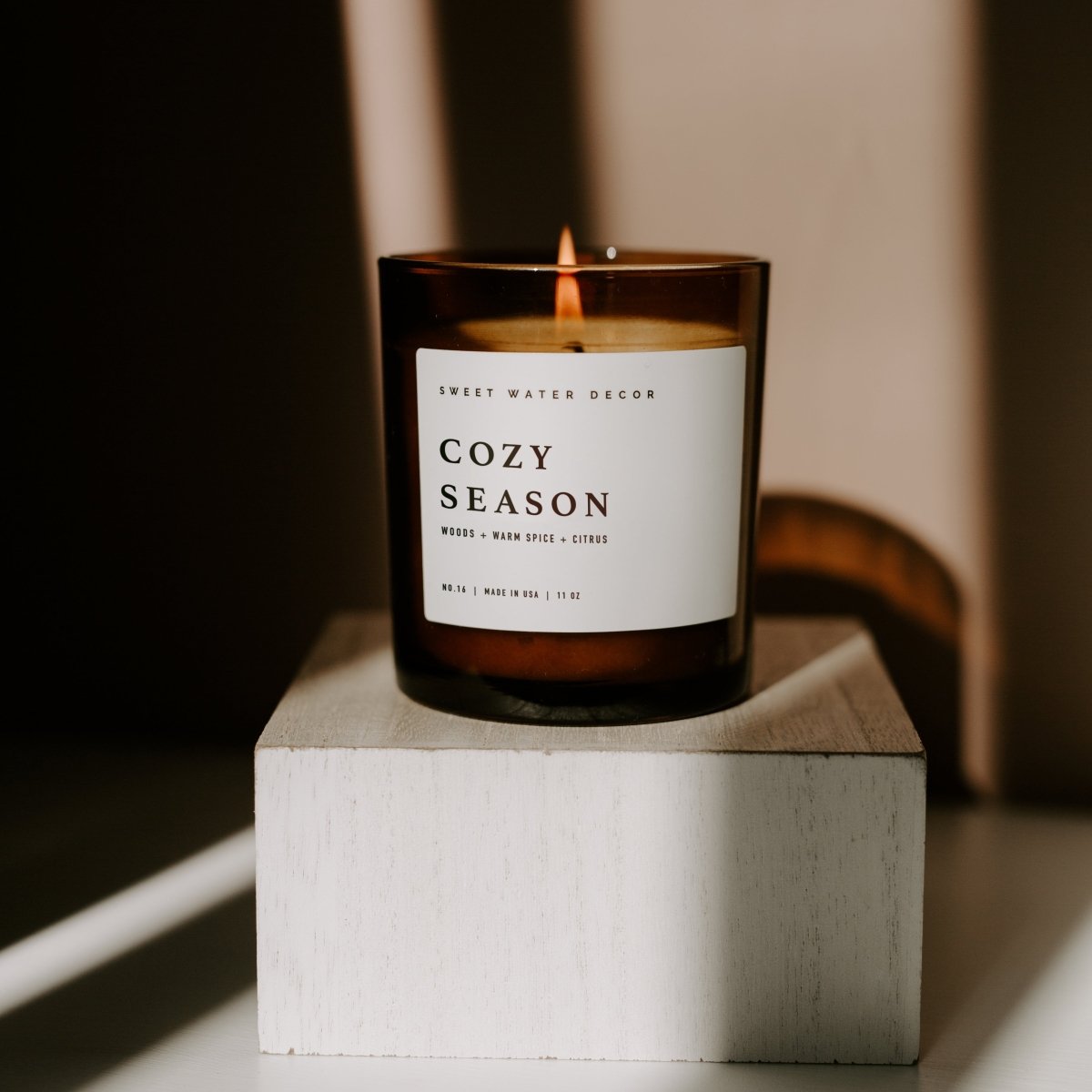 Our Cozy Season candle is a deep, inviting scent that transitions well throughout Fall and Winter. It will remind you of crisp evenings spent bundled up by the fire! With scent notes of woods, warm spice, and citrus, Cozy Season is perfect to enjoy during all of your favorite chilly months!