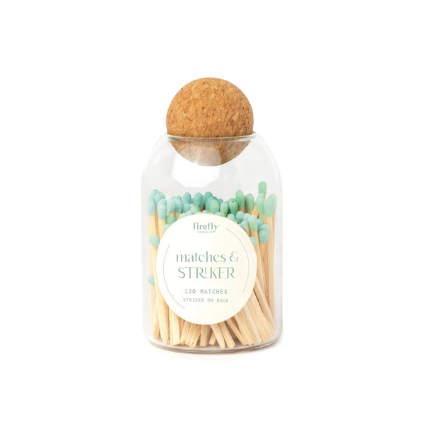 Our new Safety Matches are designed for ease of use and aesthetic appeal! With a match striker on the back of the bottle, colored match tips, and cork ball lid, these cute glass containers make the perfect candle companion in your living spaces.