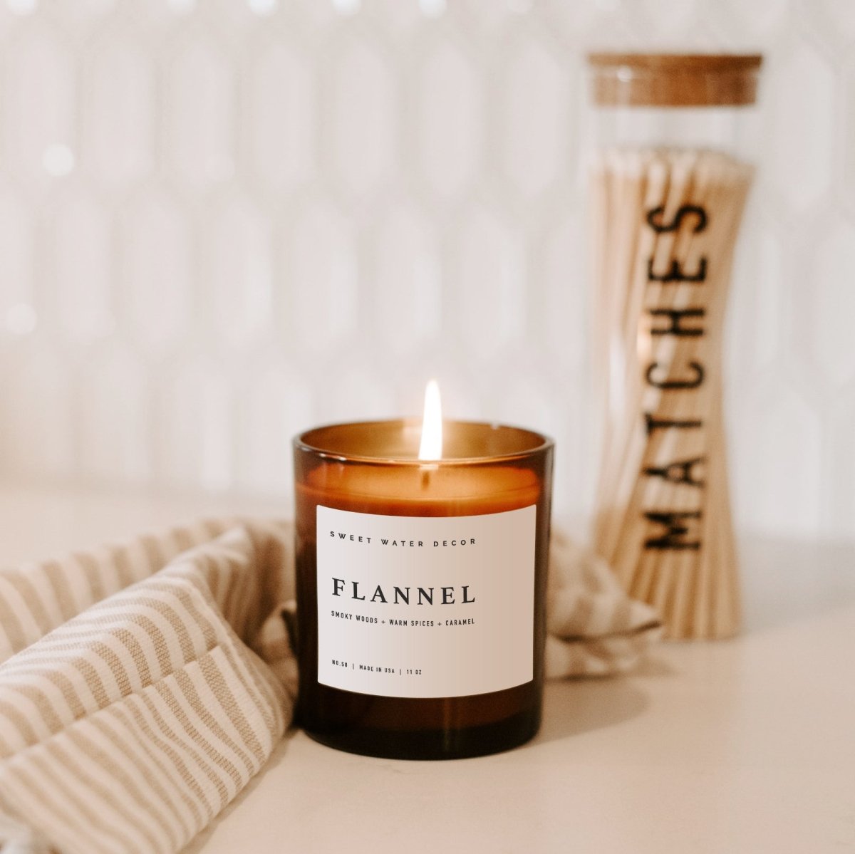 Flannel is a soft but bold fragrance blending the sweet and woodsy notes of fall together perfectly. Imagine being at a bonfire with your best friends having the time of your lives. Vanilla, caramel, cinnamon, amber, tonka, smokey woods and musk make this a one of a kind fall scent. You'll want to burn this all year long!