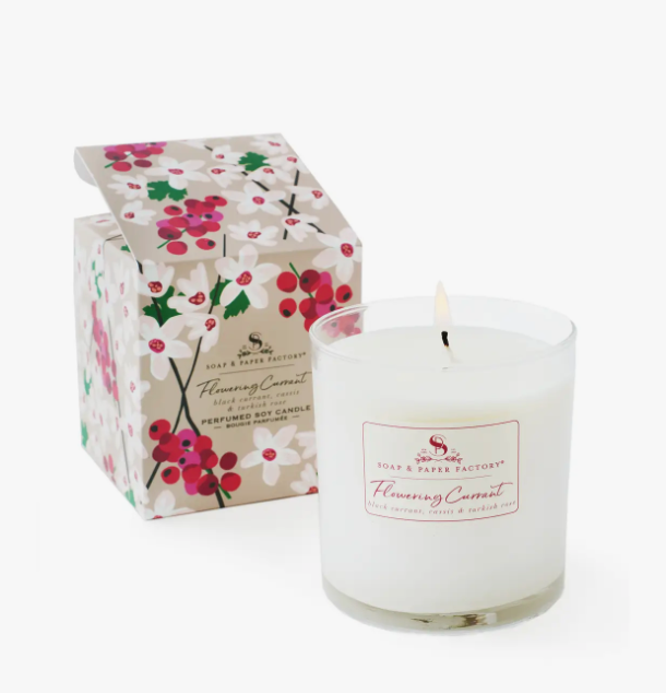 FRAGRANCE: Soap & Paper Factory’s Flowering Currant fragrance offers fruity and tart notes of Currant and Cassis, blended with deep, sultry and Floral Turkish Rose to create a beautiful, exotic blend.