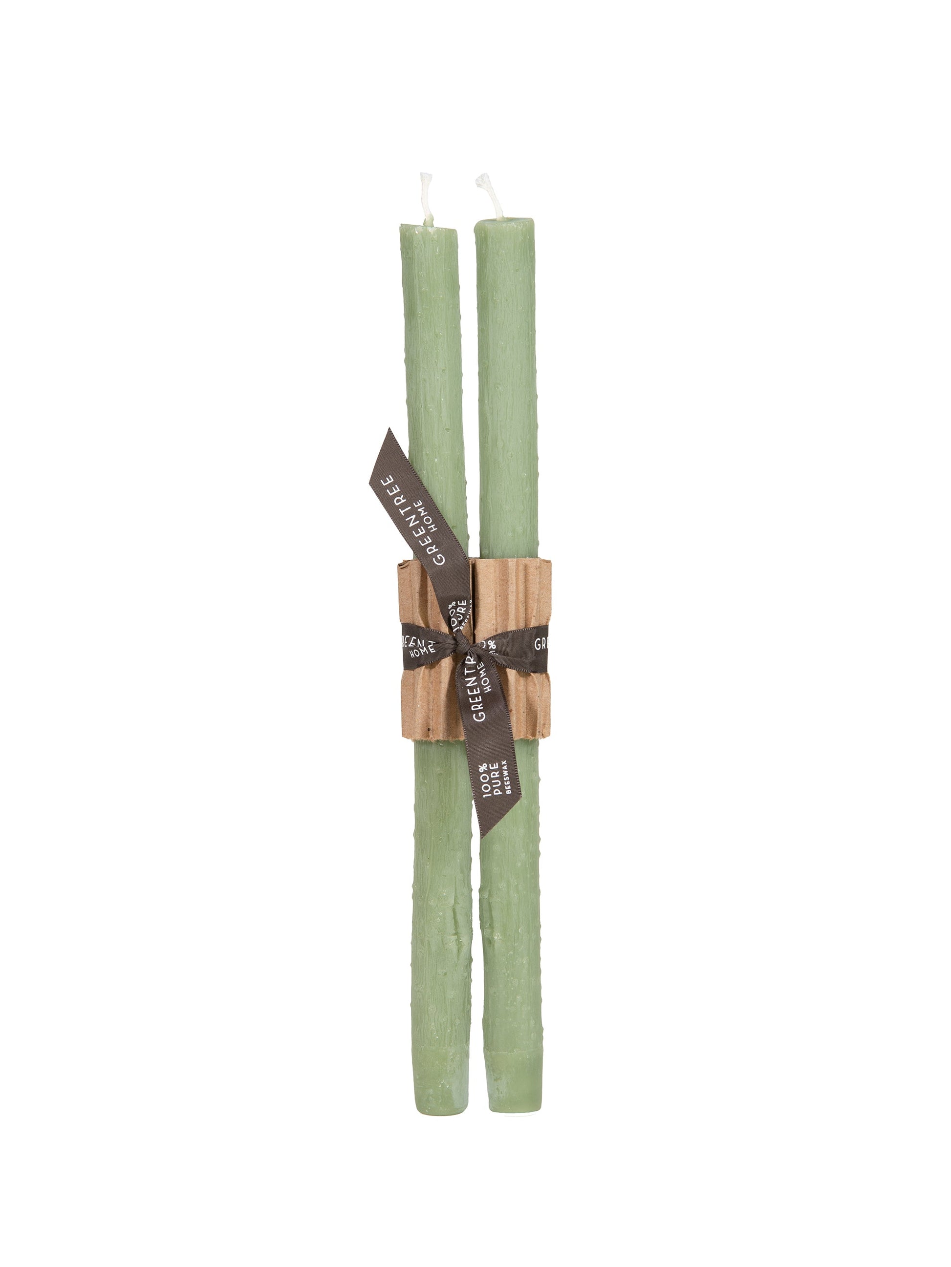 Cast from elderberry branches native to New York State and intended to look like tree twigs, these 100% beeswax taper candles come in four colors.