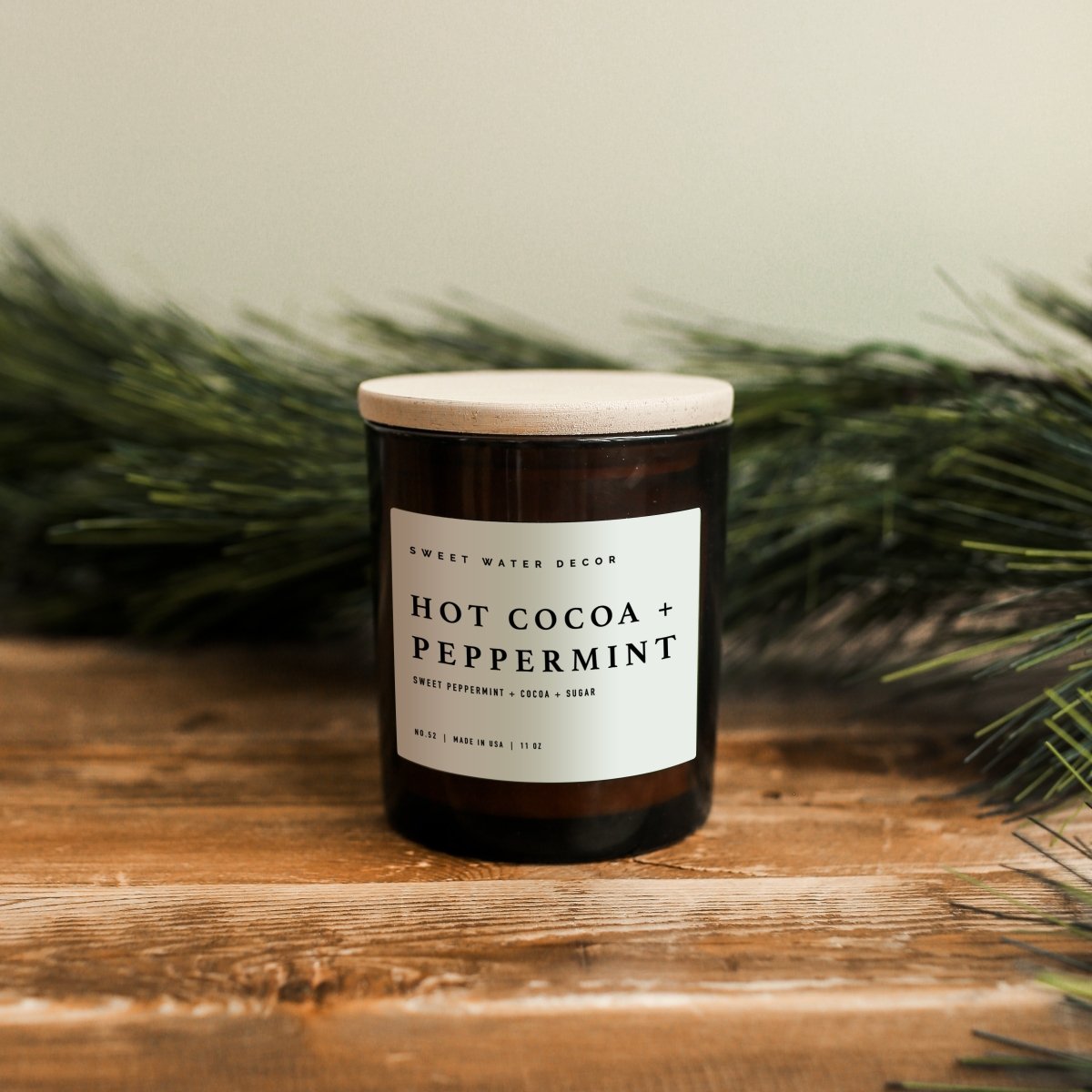 Hot Cocoa and Peppermint Soy Candle - Amber Jar - 11 oz