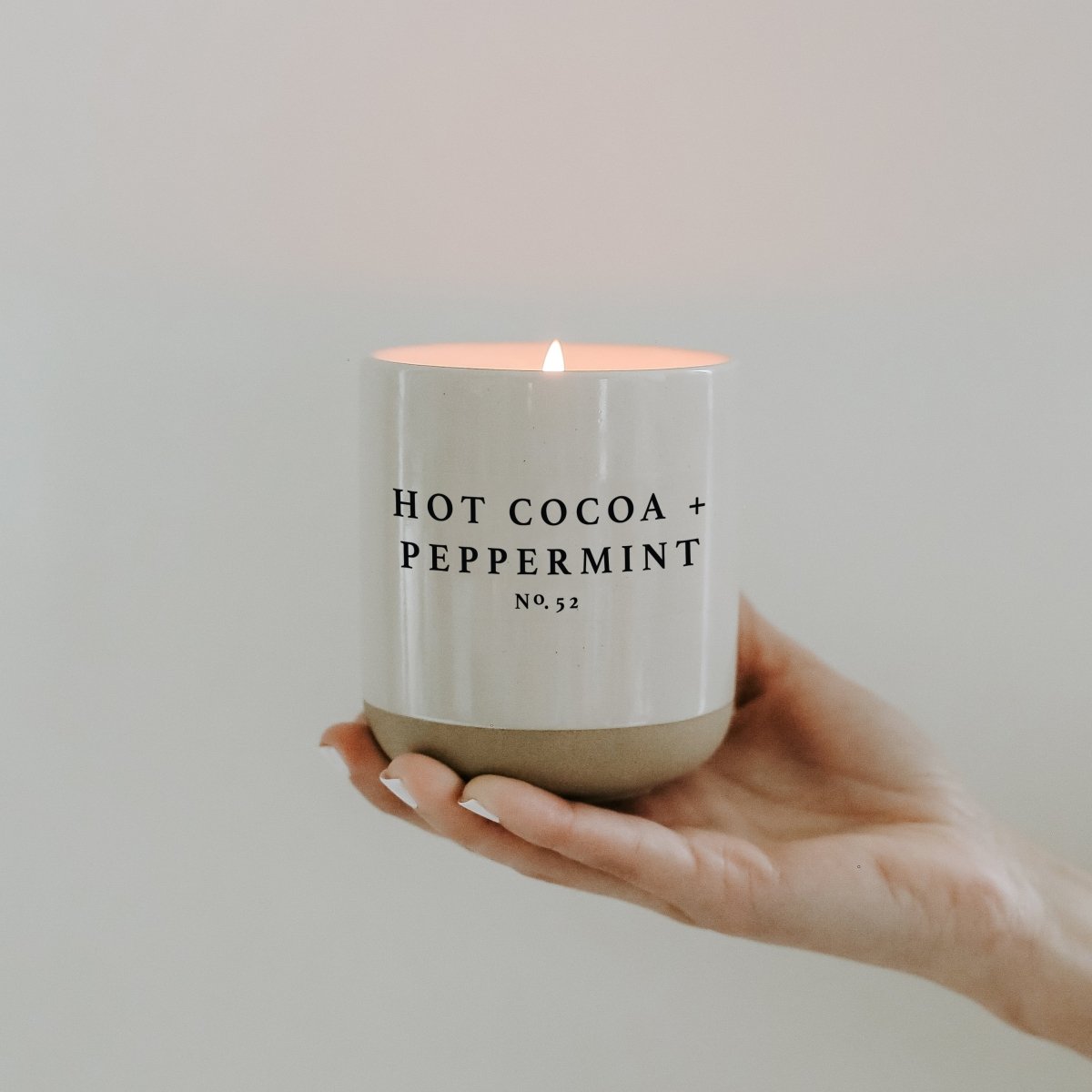 Hot Cocoa and Peppermint Soy Candle - Cream Stoneware Jar - 12 oz