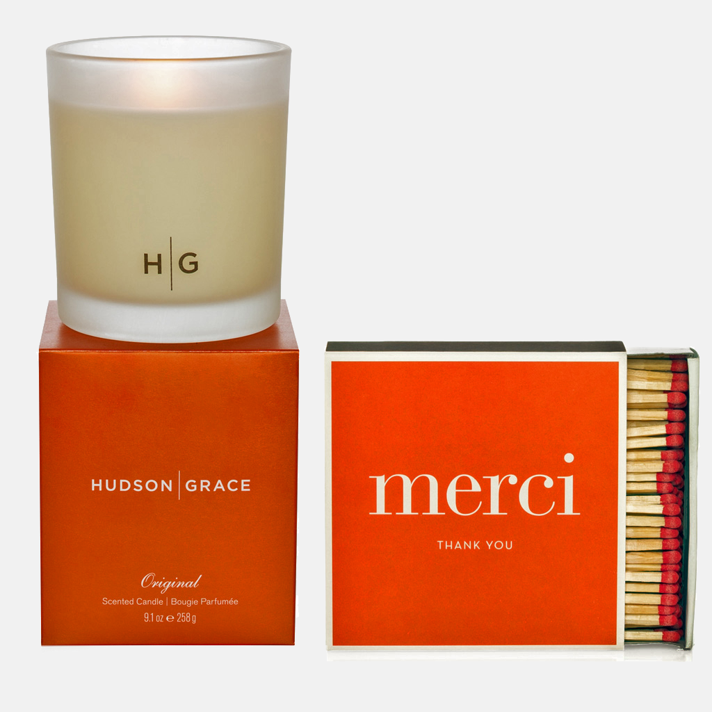 Hudson Grace Original Scented Candle & Merci Matches Gift Set