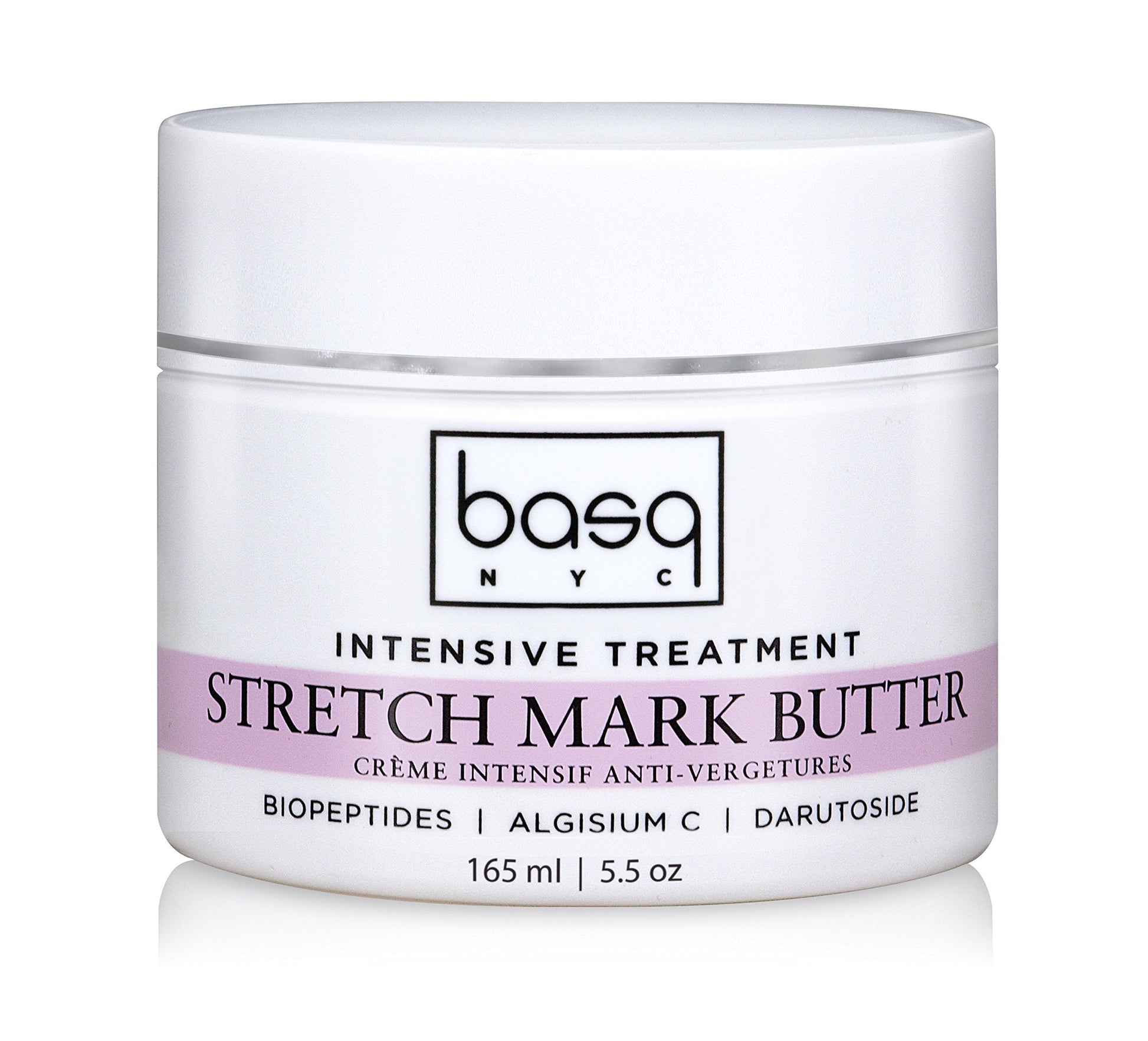 Details: Prevent & repair Stretch Marks with maximum protection ingredients. Biopeptides target skin's elasticity. Botanical extract Darutoside triggers collagen renewal for better strength and resiliency. Algisium-C is a brown algae extract rich in silica that helps to heal and smooth skin. This trio of actives helps improve the appearance of stretch mark both in depth and length. Best of all this butter has a rich texture that absorbs fast. Wrap your skin in a rich whipped blend of Shea and Jojoba plus Omega Oils Borage, Grapeseed & Rosehip Oils. The light, refreshing scent is truly addictive. Every basq product is clinically tested for zero sensitivity and allergy and FREE of Parabens, Phthalates, Mineral Oil and Sodium Lauryl Sulfate.
