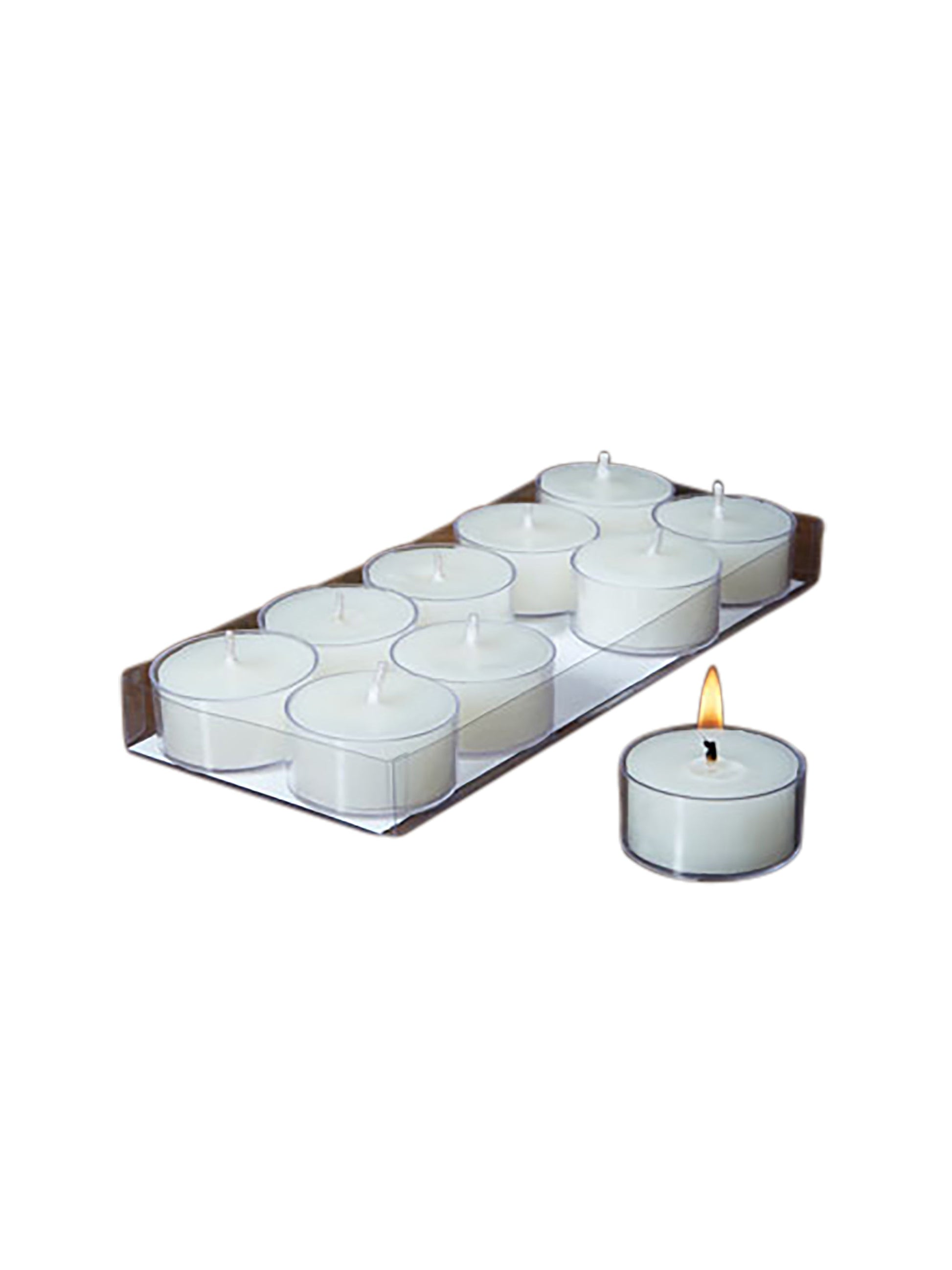High quality natural beeswax standard size tea light candles in a choice of white or gold.
