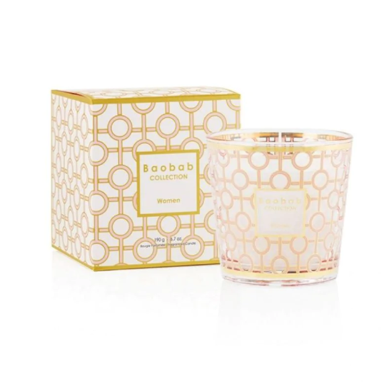 A candle for women who want something elegant. Our Women candle comes with a decorated glass candle holder enfolded in a gold and powder pink design. The graphic design on this beautiful candle represents the feminine sign. Looking for rose scented gifts, with a musky, thoroughly feminine perfume? Look no further.