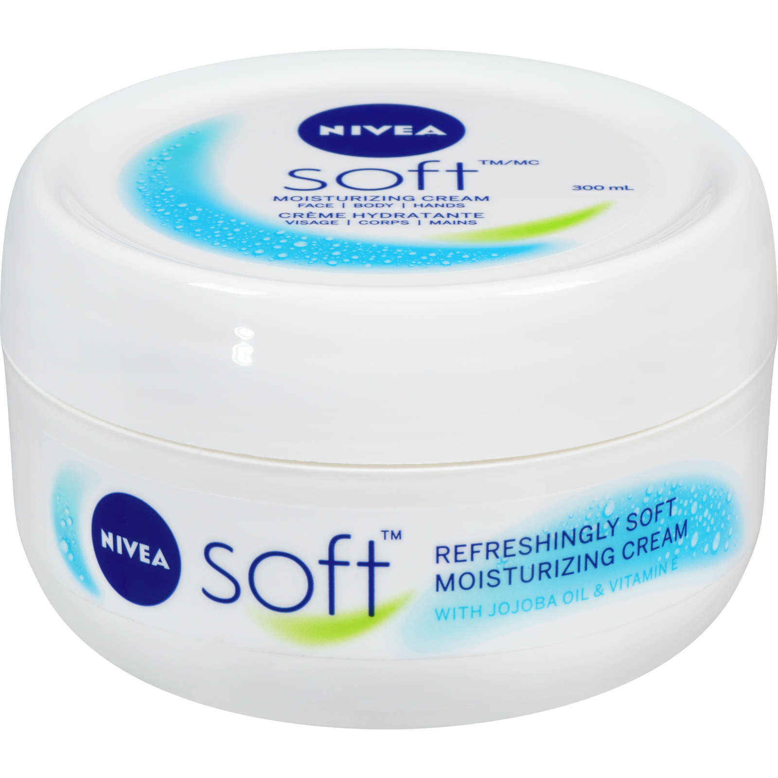Finding a gently and effective moisturizer for your face and body can often be a challenge. But with NIVEA Soft Moisturizing Cream 300 mL, your skin can feel soft, supple and healthy, every day. Gentle enough to be used by all skin types, this dry skin cream works effectively for the whole family, including those with sensitive skin. Enriched with jojoba oil and Vitamin E for a refreshing hydration, this oil-in-water emulsion is a light-weight non greasy cream that can be used as part of your daily skincare. Use this all over cream as a face cream for women and men, hand cream and body cream.