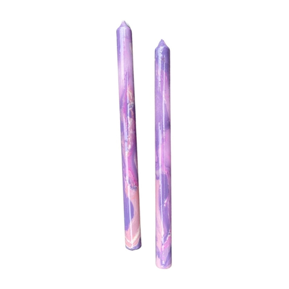 - Delicate Purple and Pink Italian Wax Marble Set of 2 Taper Candle