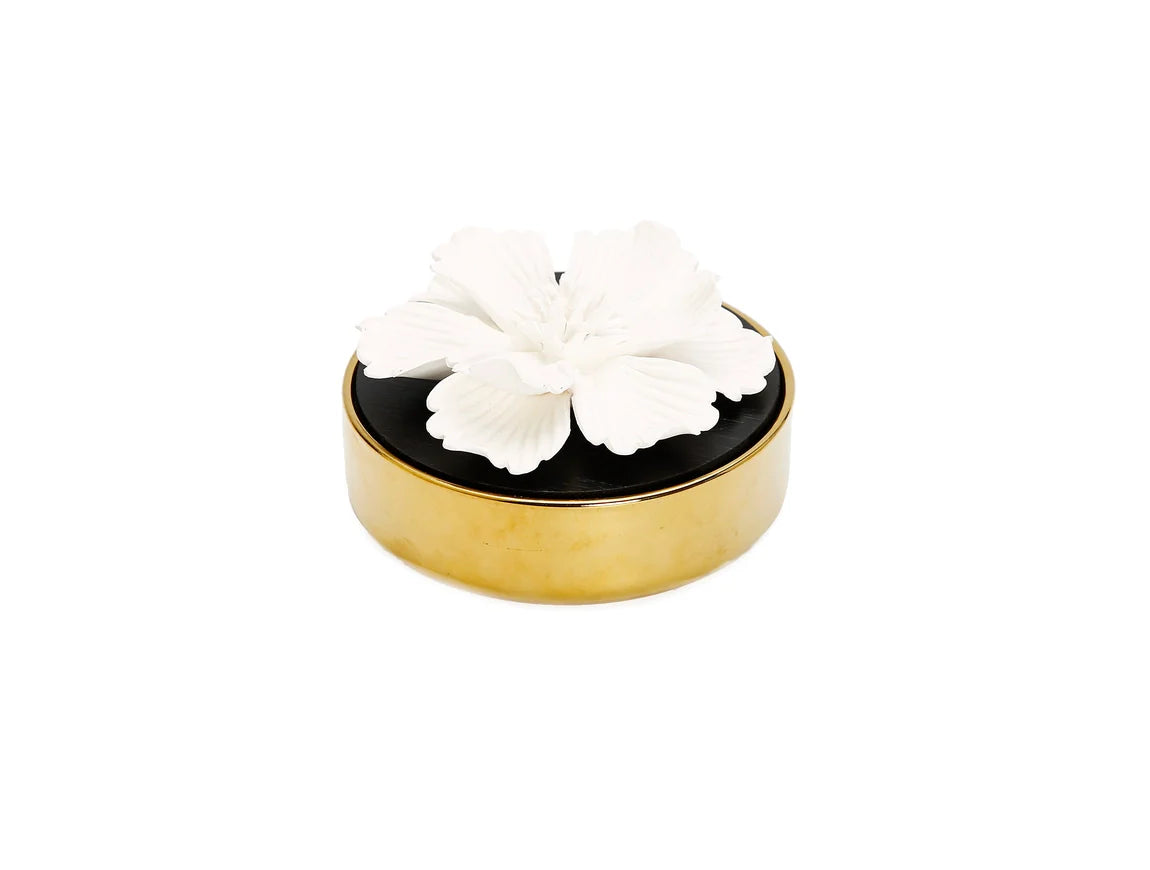 Gold Round Diffuser with Black Lid and White Flower/English Pears and Freesia Aroma