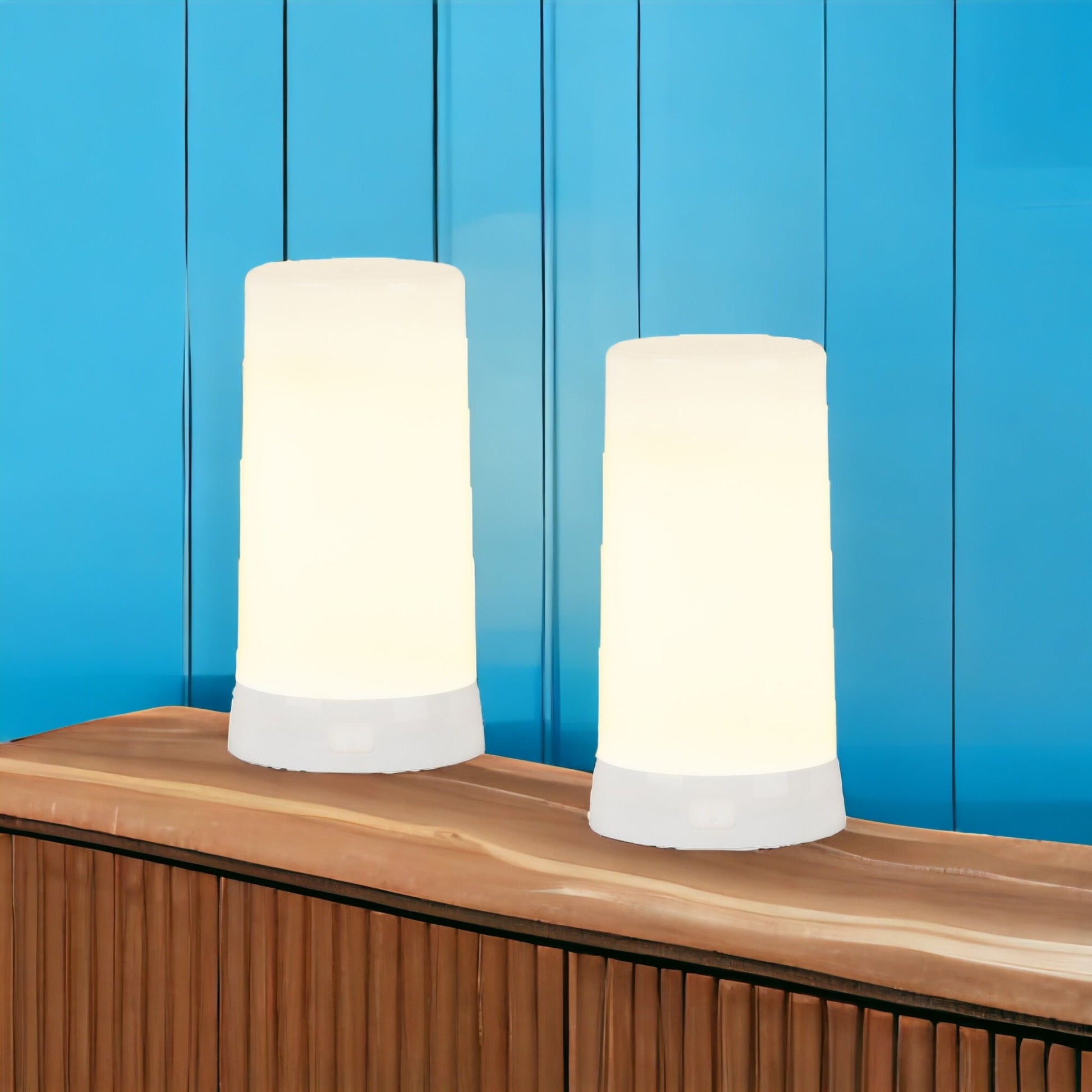 Whether it's a romantic dinner, a relaxing bath, or a special celebration, this set of two white flameless pillar candles is the perfect complement to any occasion. The classic cylindrical shape makes this pillar candle a versatile addition to any decor style, whether it's traditional, contemporary, or modern. Flameless high quality plastic candles are ideal for creative displays, holiday decorations, or themed events. Using modern technology, this flameless candle gives mesmerizing ambiance of a flickering candle. This candle includes a remote control so you can be in charge of the various settings and features. Let the warm glow of candlelight create an intimate and welcoming ambiance for your guests or a soothing atmosphere for yourself. 5-inch H x 2.75-inch W x 2.75-inch D