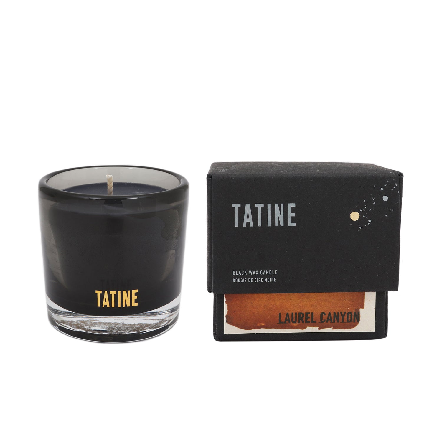 Tatine's Laurel Canyon has notes of canyon wildflowers floating into the air and onto the rain soaked eucalyptus trees, carrying the aromas of cannabis, juicy apricots, and rustic suede. Natural black wax candle in a smokey dark gray mouth blown glassware votive. Up to 16 hours of a delicate fragrant atmosphere when burned properly.